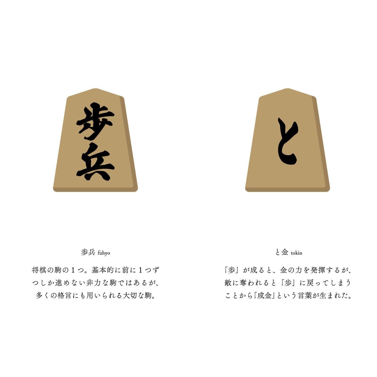 将棋の駒の1つ。基本的に前に1つずつしか進めない非力な駒ではあるが、多くの格言にも用いられる大切な駒。